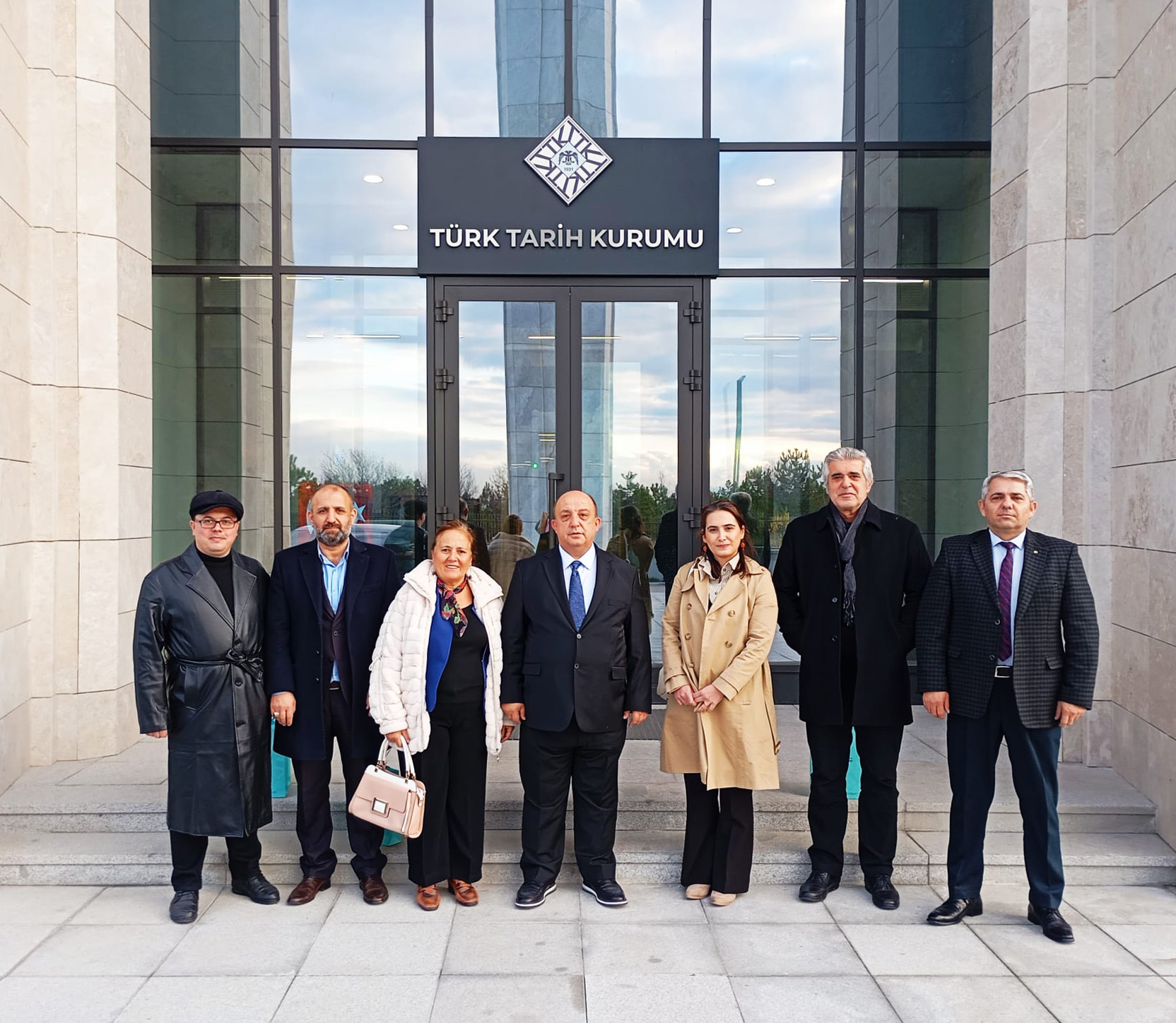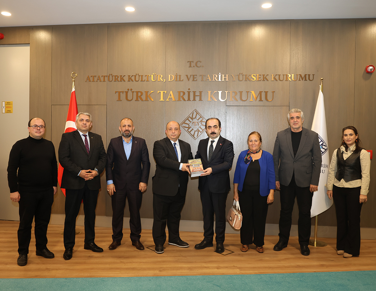 Kurşunlu Tarih Araştırmaları Derneği Başkanımız Prof. Dr. Mehmet Eryılmaz ve beraberindeki heyet, Türk Tarih Kurumu Başkanı Sayın Prof. Dr. Yüksel Özgen’i makamında ziyaret etti. Ziyaret, geçtiğimiz yıl 10 Kasım tarihinde törenle hizmete açılan Beştepe’deki Atatürk Kültür, Dil ve Tarih Yüksek Kurumu Yerleşkesi’nde gerçekleştirildi.