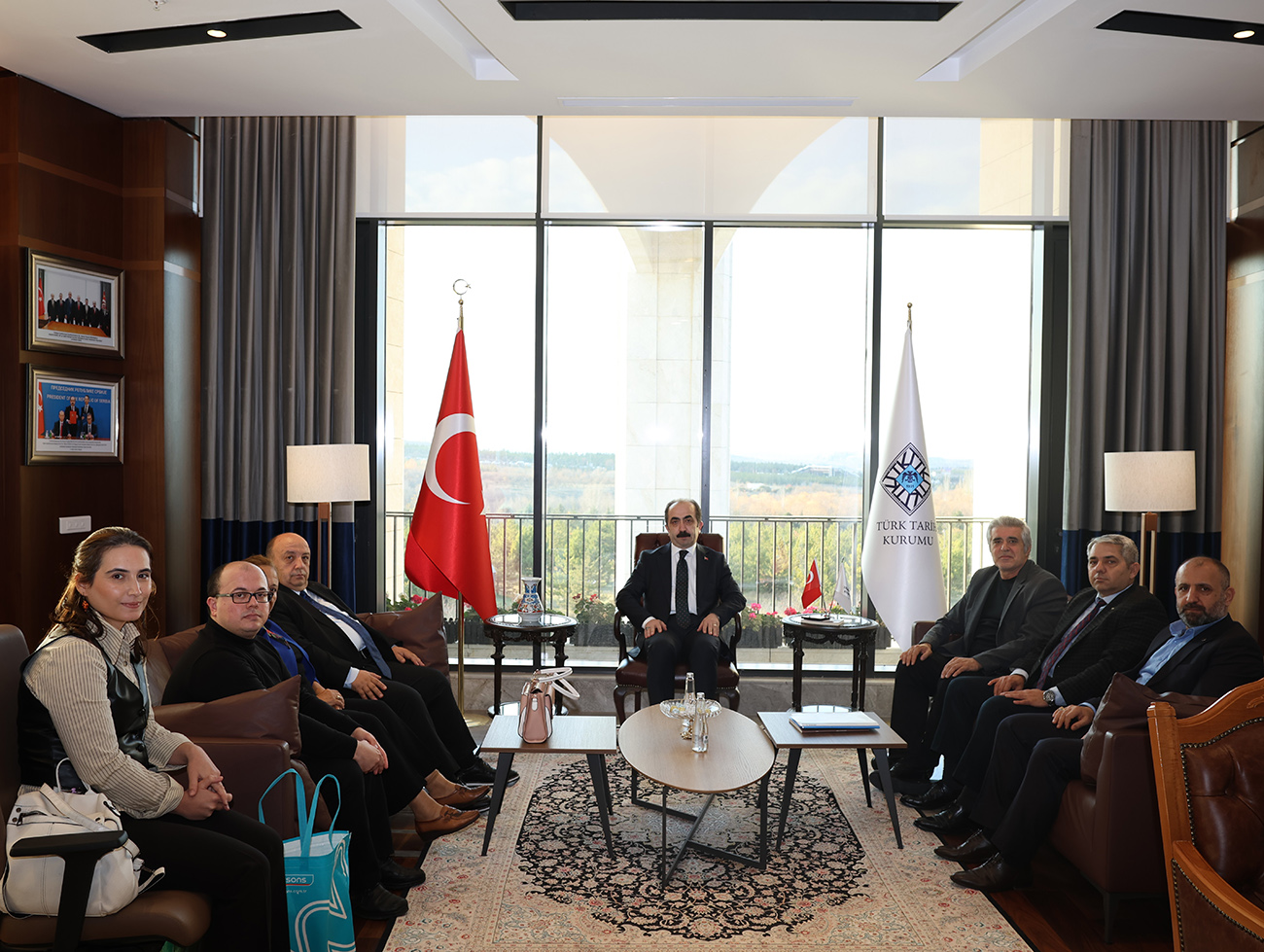 Kurşunlu Tarih Araştırmaları Derneği Başkanımız Prof. Dr. Mehmet Eryılmaz ve beraberindeki heyet, Türk Tarih Kurumu Başkanı Sayın Prof. Dr. Yüksel Özgen’i makamında ziyaret etti. Ziyaret, geçtiğimiz yıl 10 Kasım tarihinde törenle hizmete açılan Beştepe’deki Atatürk Kültür, Dil ve Tarih Yüksek Kurumu Yerleşkesi’nde gerçekleştirildi.