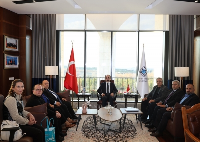 Prof. Dr. Özgen daha sonra heyete, yıldız şeklinde inşa edilen yerleşke içerisindeki görkemli kütüphaneyi gezdirerek kurumun çalışmaları hakkında bilgi verdi.